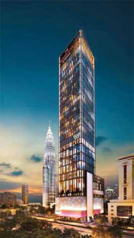 中國三冶施工總承包馬來西亞W Hotel 項(xiàng)目,距吉隆坡雙子塔500 米,建成后為吉隆坡五星級(jí)酒店,鋼筋混凝土核心筒結(jié)構(gòu),高度235 米。